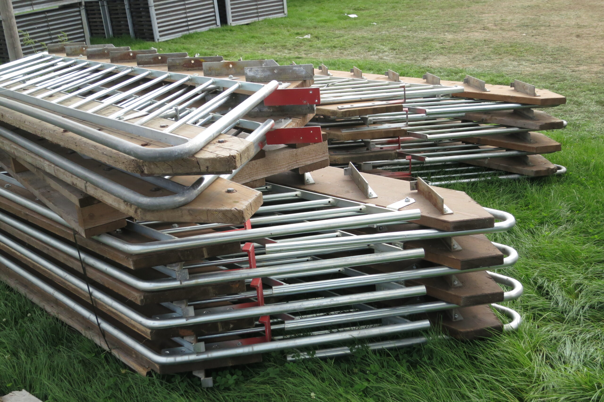 Abbau des Open Air-Kinos im Rheinpark, gestapelte Bauelemente - Aug. 2017