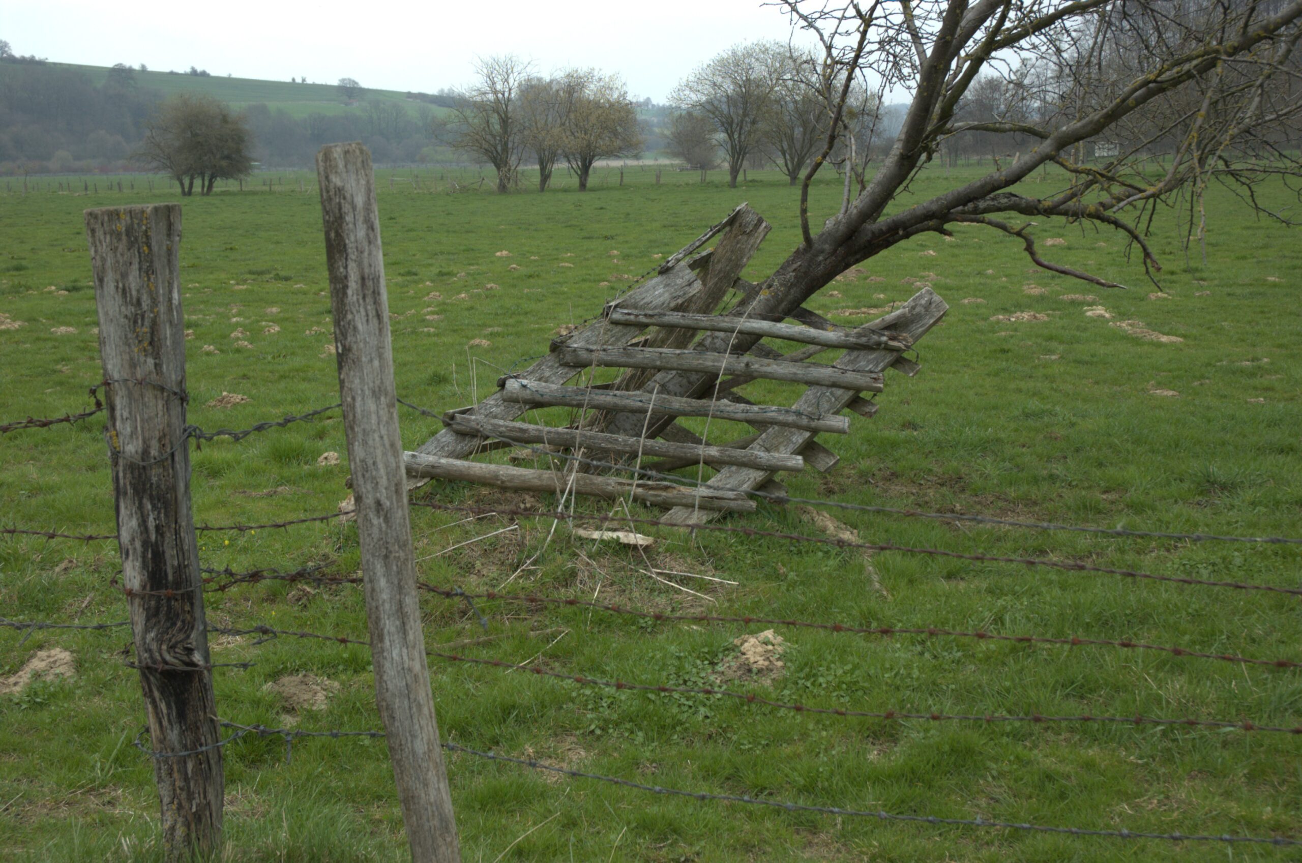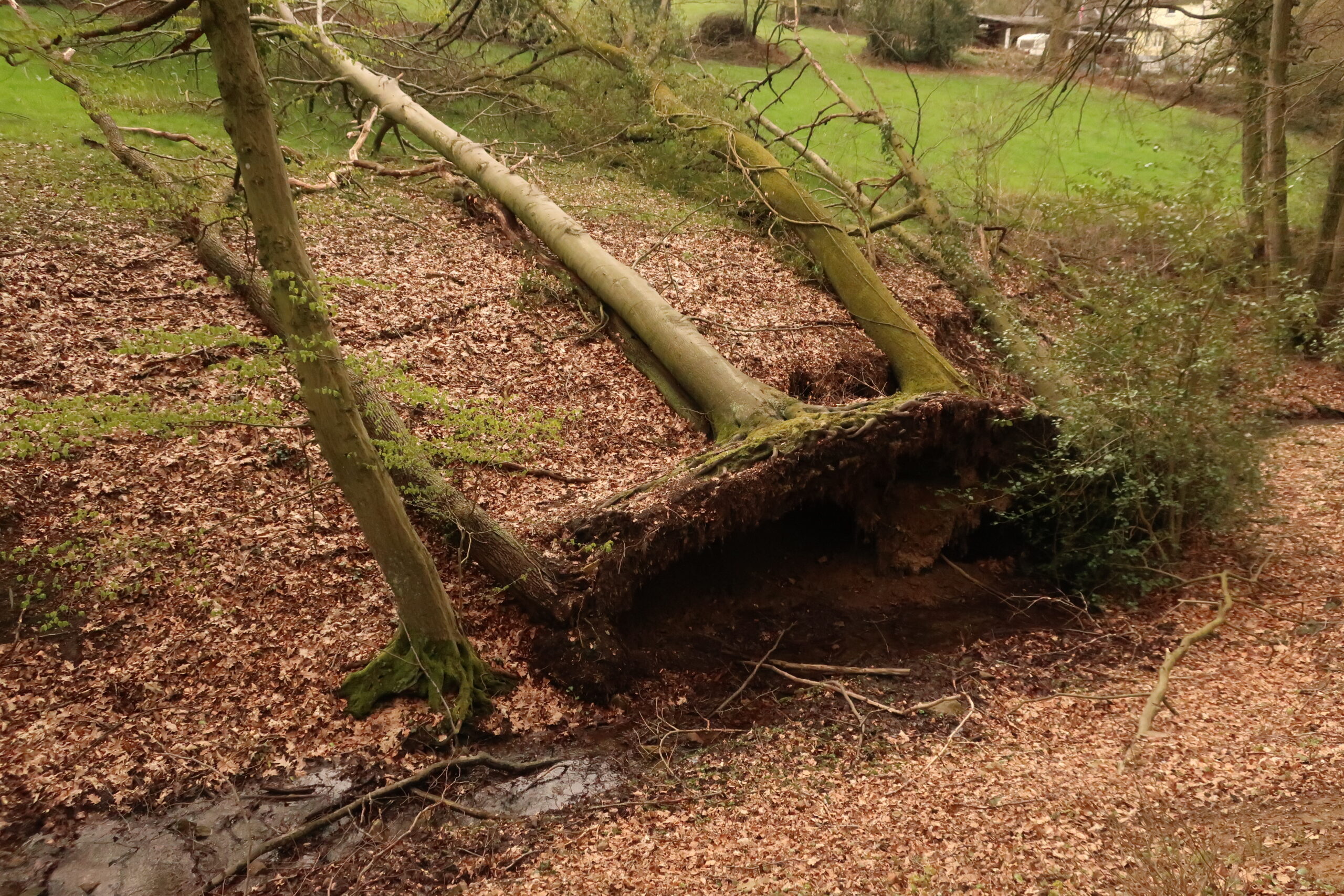 Baumgruppe bei Langenberg: parallel gewachsen, parallel gestürzt - fotografiert im April 2021
